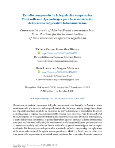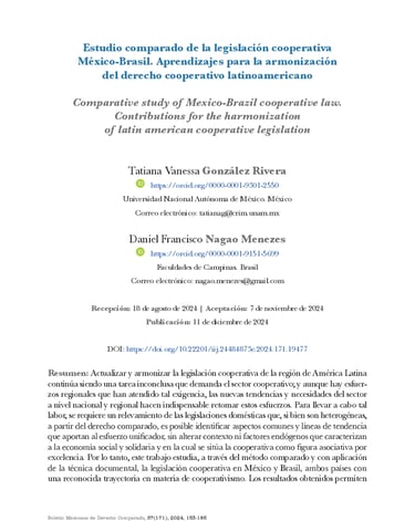 Estudio comparado de la legislación cooperativa México-Brasil. Aprendizajes para la armonización del derecho cooperativo latinoamericano.