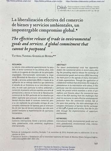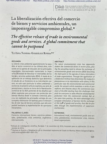 La liberalización efectiva del Comercio de bienes y servicios ambientales, un impostergable compromiso global.