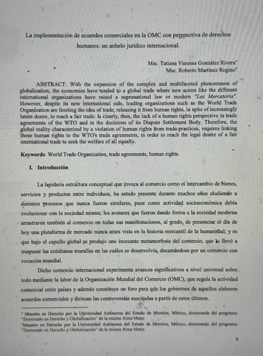 La Implementación de Acuerdos Comerciales en la OMC con Perspectiva de Derechos Humanos: Un Anhelo Jurídico Internacional.